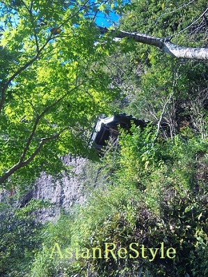 崖の斜面や岩をくりぬいた場所に